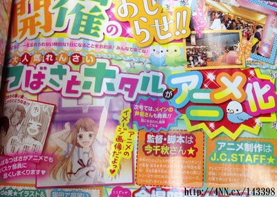 In addition, the magazine announced that J.C. Staff (Bakuman., Dream Eater Merry) will animate the anime adaptation of Nana Haruta's Tsubasa to Hotaru manga, and Chiaki Kon (Golden Time, Otome Yōkai Zakuro) will direct the anime and write the scripts. The main cast for the anime will be announced in the next issue. The anime will be screened at the Ribon Festa 2014 event next year. Four locales throughout Japan will host the free event.