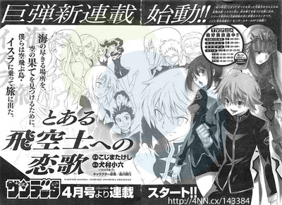 The March issue of Shogakukan's Shōnen Sunday S magazine announced on Saturday that manga creator Takeshi Kojima (Plug) will launch a manga adaptation of Koroku Inumura's The Pilot's Love Song (Toaru Hikūshi e no Koiuta) light novel series in the next issue on February 25.
