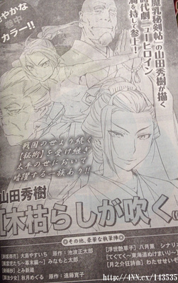 The March issue of Leed's Monthly Comic Ran magazine announced on Monday that Manyū Hiken-chō's Hideki Yamada will launch the Kogarashi ga Fuku (The Cold Wintry Wind Blows) manga series in the next issue on February 27.