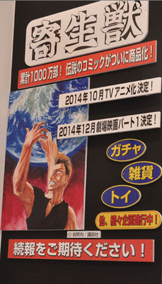 Japanese toy maker TAKARA TOMY A.R.T.S revealed at its Tokyo International Gift Show exhibit on Wednesday that the television anime of Hitoshi Iwaaki's Parasyte (Kiseiju) manga is slated to premiere in October. The anime is in production simultaneously with the science-fiction horror series' two live-action films, and the exhibit also confirmed that the first film will premiere in December. TAKARA TOMY A.R.T.S is planning tie-in gacha prize toys, regular toys, and various other goods.