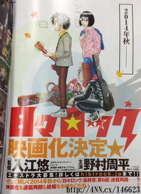 This year's 14th issue of Shueisha's Young Jump magazine is announcing on Thursday that a film adaptation of Katsumasa Enokiya's Hibi Rock (Days Rock) manga has been green-lit. The announcement does not specify if the film will be live-action of animated. The film will premiere this fall in Japan with director Yū Irie helming the project, and Shūhei Nomura is leading the cast as Takurō Hibinuma. A website for the film will open on Thursday.