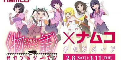 The promotion, which will run from February 8 through March 11, includes a give-away where applicants can win an autographed set of NisiOisin's original Monogatari novel series, Umaibo snacks, character tapestries, or a character poster. The specially-packaged Umaibo, which feature the mascot Umaemon dressed as the various Monogatari Series Second Season characters, come in corn potage flavor and salami flavor. Each one also comes packaged with one of two exclusive A4 size clear files.