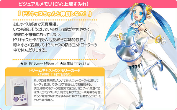 The project already inspired a novel series in Kadokawa's Dengeki Bunko Magazine last year. The novel re-imagines the various Sega game systems as goddesses who appear all over modern Japan.