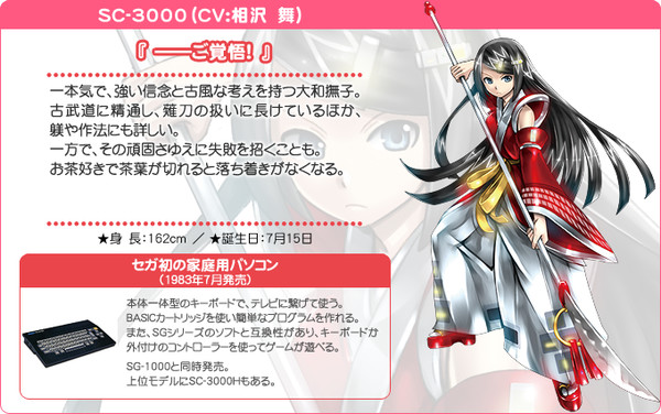 The first characters — Dreamcast, Sega Saturn, Mega Drive, Game Gear, and Master System (pictured above from left to right) — were all featured before in the Samurai & Dragons PS Vita game's "Segakko 13 ~Yume Kanaeshi Mono" event, as well as on T-shirts and other goods. Kei, the original illustrator of the girls and the artist famous for designing Hatsune Miku, returned to create updated illustrations for the novel, while Tōru Shiwasu (Boku to Kanojo no Game Sensō) has been writing it.