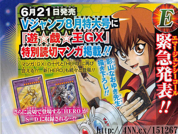 The June issue of Shueisha's V Jump magazine is announcing on Monday that one-shots for Yu-Gi-Oh! Arc-V and Yu-Gi-Oh! GX will be published in the magazine's August issue, which will ship in Japan on June 21.