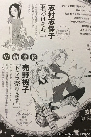 The tagline for Shimura's Naduke Somu reads "The name is the first present one receives at birth. Life depends on whether or not it's suitable." Urino's Drama Urimasu is a story about the job of a screenwriter, which involves setting aside one's own life to create someone else's love story.