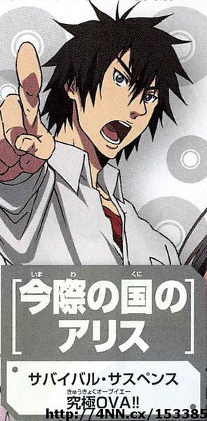 This year's 24th issue of Shogakukan's Weekly Shonen Sunday magazine is announcing on Wednesday that Haro Aso's survival suspense manga Alice in Borderland (Imawa no Kuni no Alice) will bundle an original video anime (OVA) on DVD.