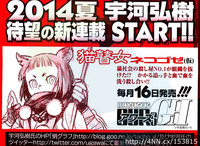 The Orutana - Ugawa Hiroki Tanpen-Shū 2 book is announcing on Friday that Hiroki Ugawa (Shrine of the Morning Mist) will launch a manga, tentatively titled Nekogoze (Feline Blind Woman), in Shonengahosha's Monthly Youngking Ours GH magazine this summer. More information on the serialization will be made available on the author's blog and/or Twitter account when updates are made.