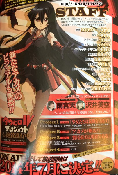 Akame ga KILL! TV Anime's Supporting Cast, Staff Unveiled