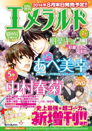 The first summer issue of the Ciel special edition magazine will launch on August 31. In the Sekai-ichi Hatsukoi manga, the magazine is a shōjo manga magazine, but the real-life version will feature both shōjo and boys-love manga. Nakamura's Sekai-ichi Hatsukoi and Junjo Romantica manga will switch publications to Emerald, as will Miyuki Abe's Hakkenden: Tōhō Hakken Ibun and SUPER LOVERS manga.