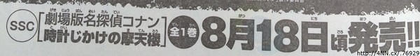 The September issue also published the final chapter of Abe and Maruden's manga adaptation of the Detective Conan film, Case Closed The Movie: The Time Bombed Skyscraper (Meitantei Conan: Tokei Jikake no Matenrou). The series will be compiled into one volume and ship in Japan on August 18.