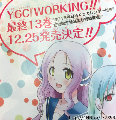 The September issue of Square Enix's Shonen Gangan magazine is announcing on Tuesday that the 13th and final compiled volume of Karino Takatsu's Working!! manga will ship in Japan on December 25. A limited edition of the final volume bundling a 2015 day-by-day calendar for 2015 will also be released on the same day.