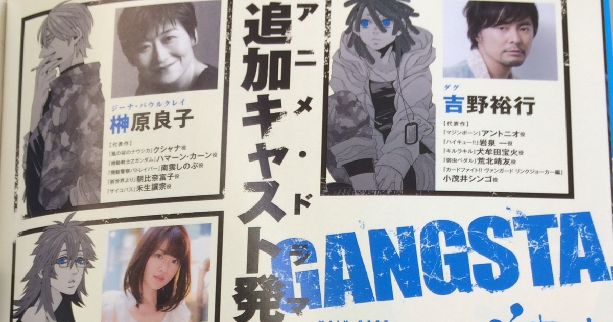 The October issue of Shinchosha's Monthly Comic @Bunch magazine revealed additional cast members for the anime adaptation of Kohske's Gangsta. manga on Thursday. The additional cast is as follows: