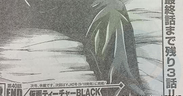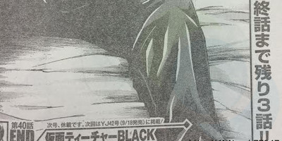 This year's 39th issue of Shueisha's Young Jump magazine is revealing on August 28 that Tohru Fujisawa's Kamen Teacher Black manga will end in three more chapters. The manga is taking a break for issues 40 and 41, and will return in the 42nd issue on September 18. If the manga does not take a break after that, it will end in the 44th issue on October 2.