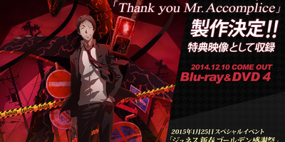 The official website for the Persona 4 the Golden Animation television anime announced on Saturday that an alternate ending episode titled “Thank you Mr. Accomplice” will be included on the fourth Blu-ray and DVD volume of the series. The volume will be released on December 10. The episode will focus on Adachi, and the website lists the summary: "After Yū finds out the past and circumstances of Adachi, he makes a single decision in order to save him."
