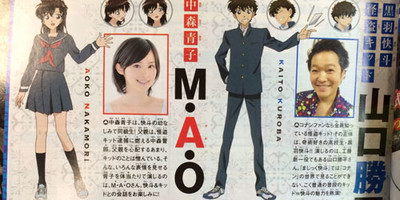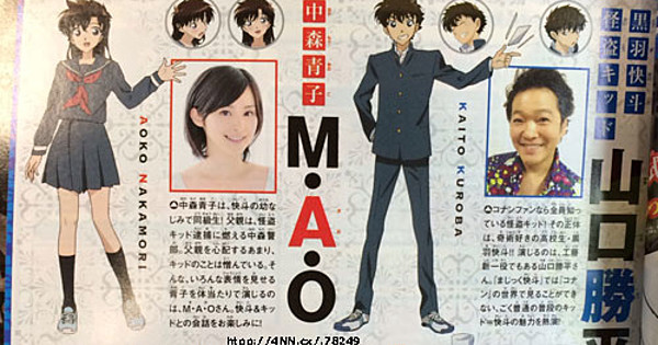 This year's 40th issue of Shogakukan's Weekly Shonen Sunday magazine is announcing the cast of the new television anime series based on Gōshō Aoyama's Magic Kaito manga. Kappei Yamaguchi will play the title magician thief and his Kaito Kuroba alter-ego, after playing the same role in the Detective Conan anime. (Yamaguchi also plays Shin'ichi Kudo himself in Detective Conan.) However, M.A.O will play Kaito's childhood friend and classmate Aoko Nakamori; Minami Takayama (the voice of Conan Edogawa) and Yukiko Iwai played Aoko in Detective Conan, while Ayumi Fujimura played her in the 2010 Magic Kaito: Kid the Phantom Thief television special.