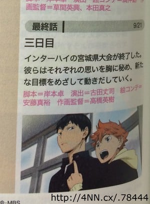 This year's October issue of Newtype magazine, which ships on Tuesday, will announce that the final episode of the Haikyu!! anime will air on September 21 with the show's 25th episode.