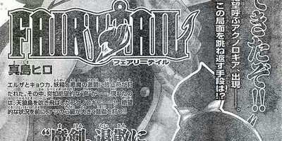 Mashima is also publishing the 400th chapter of Fairy Tail in the following issue. To celebrate the accomplishment, the chapter will have a color opening page, and the magazine will give away an exclusive Quo Card to 400 readers.