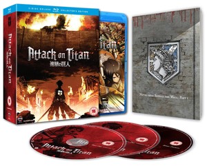On Monday September 15, Manga Entertainment will release the first volume of the action/monster series Attack on Titan, as a DVD, a Blu-ray and a Blu-ray Collector's Edition (pictured). All editions include two commentary tracks by the dub crew. The Collector's Edition Blu-ray contains a bonus DVD disc with a 'Making of Attack on Titan' film, a booklet, plus 13 episodes of the spoof series 'Chibi Theatre: Fly, Cadets, Fly!'
