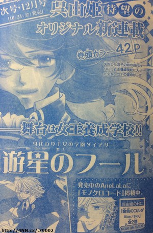 The November issue of Hakusensha's LaLa shojo magazine is announcing on Wednesday that manga creator Yuki Kure will start a new, original manga series in the following issue on October 21. Kure will launch Yūsei no Fool with a 42-page chapter with a color opening page.