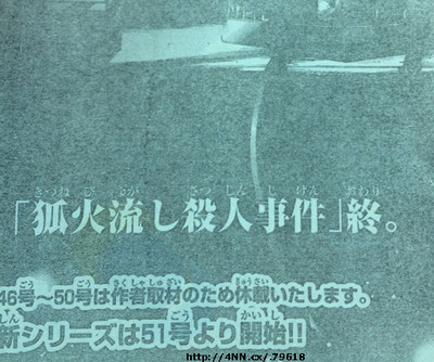 This year's 45th issue of Shueisha's Weekly Shōnen Magazine announced that Yōzaburō Kanari and Seimaru Amagi's Kindaichi Shōnen no Jikenbo R (The File of Young Kindaichi Returns) manga will go on hiatus in the following issue. The series will resume with a new arc in the magazine's 51st issue on November 19. The creators will be conducting research during the hiatus.