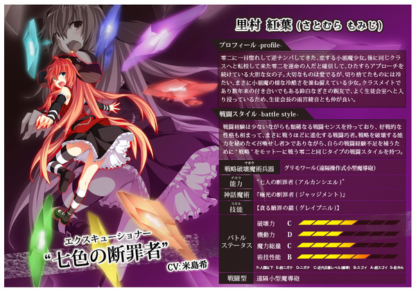 Nozomi Yoneshima as "The Rainbow Executioner" Momiji Satomura