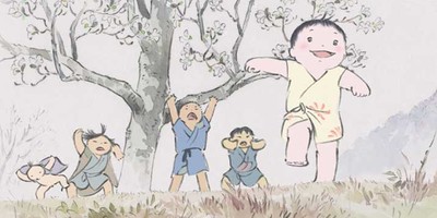 Okina (voiced by Takeo Chii) is a bamboo cutter in ancient rural Japan. One day in the forest, he finds a tiny baby in the folds of a bamboo shoot. He brings the creature home to his wife Ounaa (Nobuko Miyamoto) and they decide to keep her and raise her as a princess. She is clearly not of this world. Kaguya (Aki Asakura) grows at an unnatural rate, soon maturing into an uncommonly beautiful young woman. Since Okina has now also found a cache of gold and treasure in the forest, every suitor wants Kaguya. But this is not a fairytale of courtship and marriage. True to the Studio Ghibli that brought us Ponyo and Kiki's Delivery Service, The Tale of the Princess Kaguya follows this strange young female as she creates her own identity.