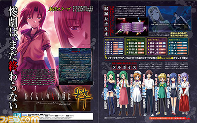 The November 20th issue of Kadokawa's Famitsu magazine is announcing on Thursday that developer Kaga Create will release the game Higurashi no Naku Koro ni Sui (When They Cry -The Best-) for the PlayStation 3 and PlayStation Vita.
