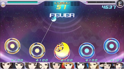 In the game, the player becomes a new artist who aims to become a top idol alongside other Hello! Project artists. In the rhythm game mode, the player can get idols as gachapon (capsule machine) prizes and event rewards. Then the player can make an original idol group to clear the rhythm game mode with varying degrees of difficulty. The player must become an idol and tap the correct mark in time with hit songs while utilizing combos and skills to clear a stage.