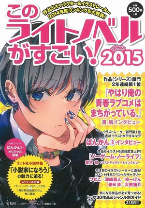 The cover preview image for the 2015 edition of Takarajimasha's Kono Light Novel ga Sugoi! (This Light Novel is Amazing!) guidebook reveals that Yahari Ore no Seishun Love Come wa Machigatteiru. (My Teen Romantic Comedy SNAFU) has topped the series ranking for the second year in a row. The book will ship on November 21 with the full ranking lists, as well as an interview with My Teen Romantic Comedy SNAFU creator Wataru Watari.