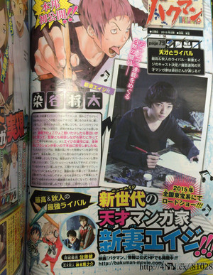 This year's 51st issue of Shueisha's Weekly Shonen Jump magazine is announcing on Monday that Shōta Sometani (live-action Himizu and Parasyte movies) will join the cast as Eiji Niizuma in the upcoming live-action film of Tsugumi Ohba and Takeshi Obata's Bakuman manga. Eiji Niizuma is the "strongest rival" of the two main leads.