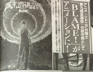 The January issue of Kodansha's Monthly Afternoon magazine is announcing on Tuesday that Tsutomu Nihei's Blame! manga will be animated within Sidonia no Kishi: Dai-kyū Wakusei Seneki (Knights of Sidonia: War of the Ninth Planet), the second Knights of Sidonia anime season. The second Knights of Sidonia season will premiere next April in the Animeism programming block, and the character Tsumugi will "appear at last." Hiroyuki Seshita, the assistant director of the first season, is replacing Kobun Shizuno as the director of the second season at Polygon Pictures, and Sadayuki Murai is returning to be in charge of the series scripts.