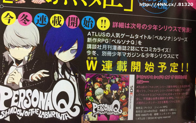 The January issue of Kodansha's Monthly Shōnen Sirius magazine is announcing on Wednesday that Persona Q: Shadow of the Labyrinth Nintendo 3DS game is inspiring two manga series. The series are slated to launch in Kodansha's Bessatsu Shōnen Magazine and Monthly Shōnen Sirius this winter.