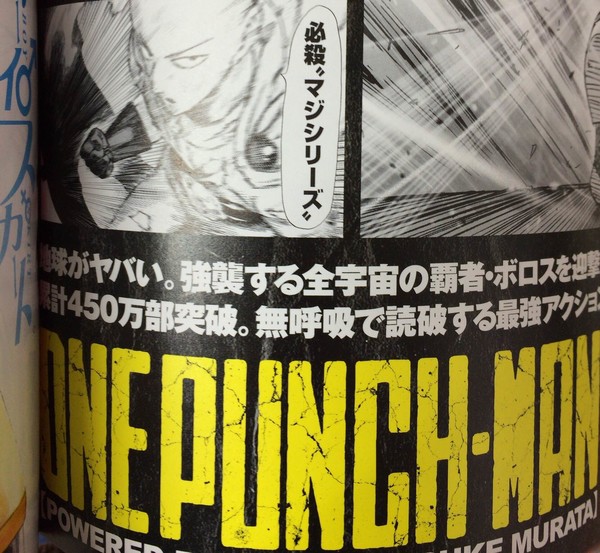 The December issue of Shueisha's Miracle Jump magazine announced on Tuesday that Yūsuke Murata's One-Punch Man manga has over 4.5 million copies in circulation. The series passed the 3.4 million mark in May, and the 2.2 million mark last November.
