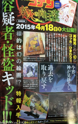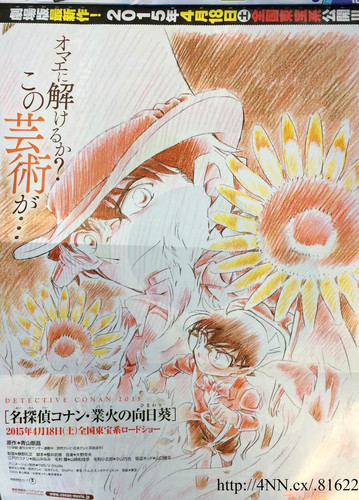 The first 2015 issue of Shogakukan's Weekly Shonen Sunday magazine is announcing on Wednesday that the 19th Detective Conan film, titled Detective Conan: Gōka no Himawari (Detective Conan: Sunflowers of Inferno), will open on April 18, 2015 in Japan.