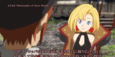 ZAQ (Love, Chunibyo & Other Delusions!, Rail Wars!, Trinity Seven) is performing the opening theme song "Philosophy of Dear World," and True (Buddy Complex, pictured below) is performing the ending theme song, "ailes." The "Philosophy of Dear World" single will go on sale on January 21, and the "ailes" single will follow on February 11.