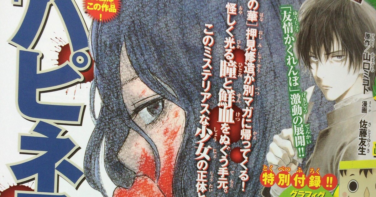 The February issue of Kodansha's Bessatsu Shōnen Magazine is announcing on Friday that Shūzō Oshimi, the manga creator of Flowers of Evil and Boku wa Mari no Naka (Inside Mari), will launch the new series Happiness. The series will start in the following issue of Bessatsu Shōnen Magazine on February 9, and it will also adorn the issue's cover.