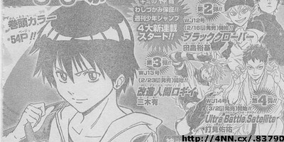Yūki Tabata (Hungry Joker) will then start Black Clover (top right) in the 12th issue on February 16. Yū Miki will start Kaizō Ningen Roggy (Cyborg Roggy, center right) in the 13th issue on February 23. Finally, Yūsuke Utsumi (Gado-den) will start Ultra Battle Satellite (bottom right) in the 14th issue on March 2.