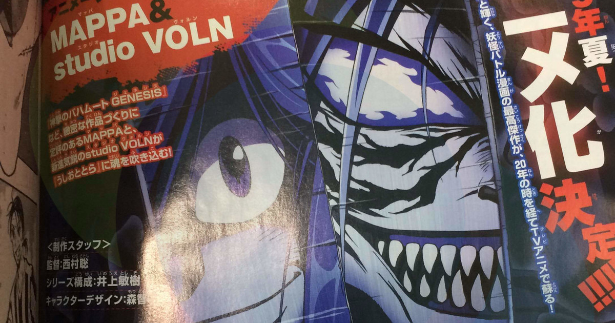 This year's 10th issue of Shogakukan's Weekly Shonen Sunday magazine is announcing on Wednesday that a television anime adaptation of Kazuhiro Fujita's supernatural battle manga Ushio & Tora has been green-lit for this summer. Satoshi Nishimura (Trigun, Hajime no Ippo) is directing the anime at MAPPA (Rage of Bahamut Genesis) and a relatively new company, Studio VOLN. Toshiki Inoue (Chaos;HEAd, Death Note, Ranma ½) is in charge of the series scripts, and Tomoko Mori (guest character designer on Garo: Honoo no Kokuin, Juden Chan) is designing the characters.