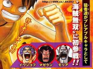 This year's 12th issue of Shueisha's Weekly Shonen Jump magazine will announce on Monday that Ivankov and Magellan will be playable characters in Bandai Namco Games' upcoming One Piece: Pirate Warriors 3 action game. The magazine also reveals the game will have a "Dream Log" mode that unlocks characters and items during gameplay. The character Oars will also appear as a boss.