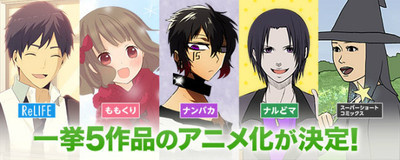 NHN Play Art announced on Friday that Yayoiso's ReLIFE, Kurose's Momokuri, Shō Futamata's Nanbaka, Kyū Amekawa's Super Short Comics will receive anime adaptations. The company also confirmed the television anime of Kometokaite Meter's Narudoma manga that was announced on January 23. All five manga titles run on NHN Play Art's free manga smartphone app comico.