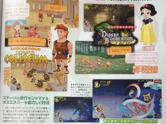 This week's issue of Kadokawa's Weekly Famitsu magazine also confirms the following worlds: Olympus Coliseum, Dwarf Woodlands, Agrabah, and Wonderland, as well as the original world Daybreak Town.