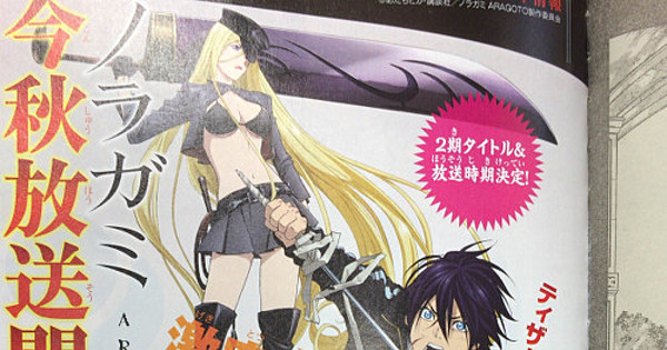 The July issue of Kodansha's Monthly Shonen Magazine is unveiling the title, premiere timeframe, and a new teaser visual of the second Noragami television anime season on June 6. Noragami Aragoto will premiere this fall. The cast will appear at a Noragami Aragoto event in Tokyo on August 8.