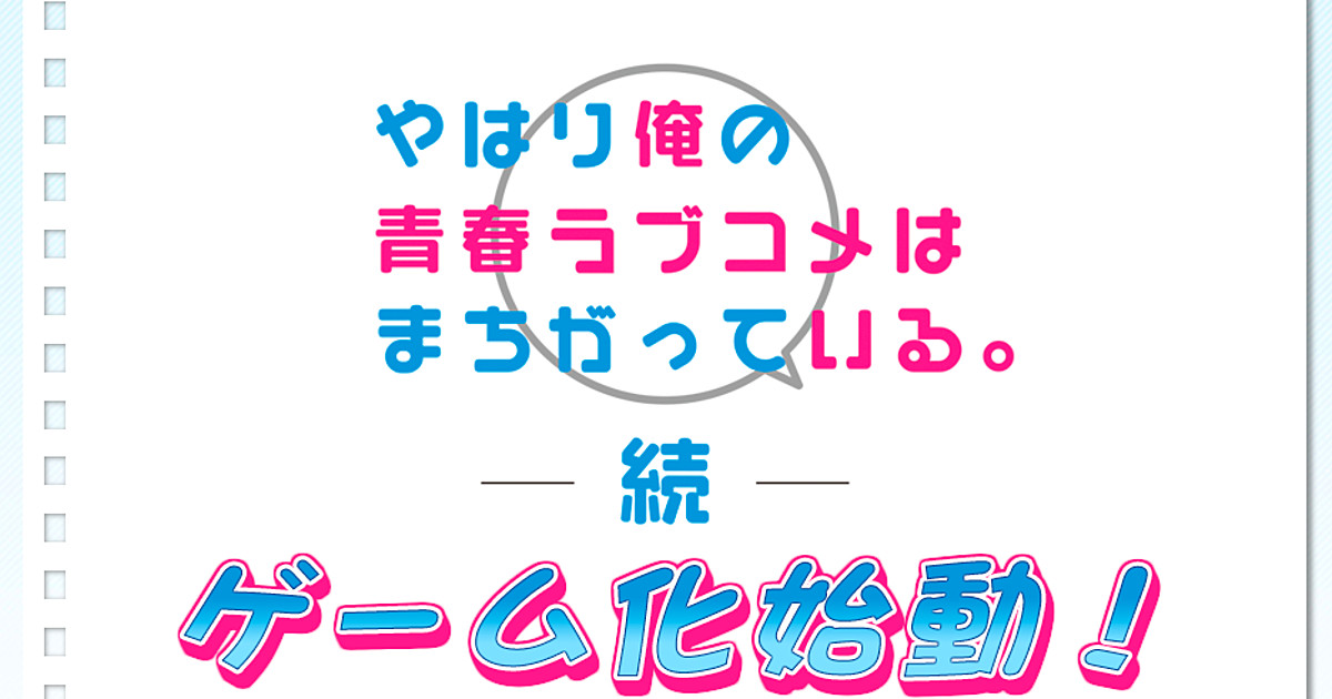 5pb. Games has launched a website for a second video game based on Wataru Watari's Yahari Ore no Seishun Love Come wa Machigatteiru. (My Teen Romantic Comedy SNAFU) light novel series.