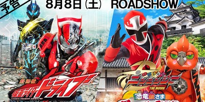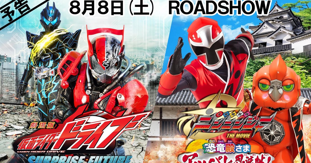 Japanese production company Toei began streaming a trailer for its upcoming Gekijōban Kamen Rider Drive: Surprise Future and Shuriken Sentai Nin'ninger The Movie: Kyōryū Tono-sama Appare Ninpōchō! films on Thursday. The video shows scenes from both films.