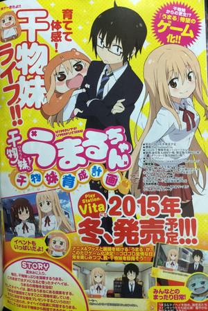 The July 16 issue of Shueisha's Weekly Young Jump magazine is announcing on Thursday that Sankaku Head's Himōto! Umaru-chan manga is inspiring a PlayStation Vita game this winter. The "himōto-raising simulation" game Himōto! Umaru-chan: Himōto Ikusei Keikaku (The Himōto Raising Project) will cost 6,480 yen (about US$53) for the regular edition or 9,980 yen (US$82) for the limited edition.