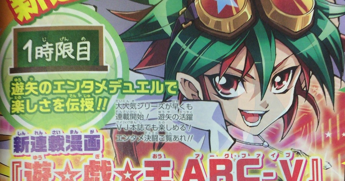 This year's September issue of Shueisha's V Jump magazine will announce on Tuesday a Yu-Gi-Oh! Arc-V manga series will debut in the October issue on August 21. Original character designer Naohito Miyoshi is drawing the series.