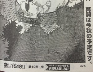 This year's 34th issue of Shogakukan's Big Comic Spirits magazine announced on Saturday that Yu Aida's 1518! (pronounced Ichi Go Ichi Hachi) manga will go on hiatus until fall.