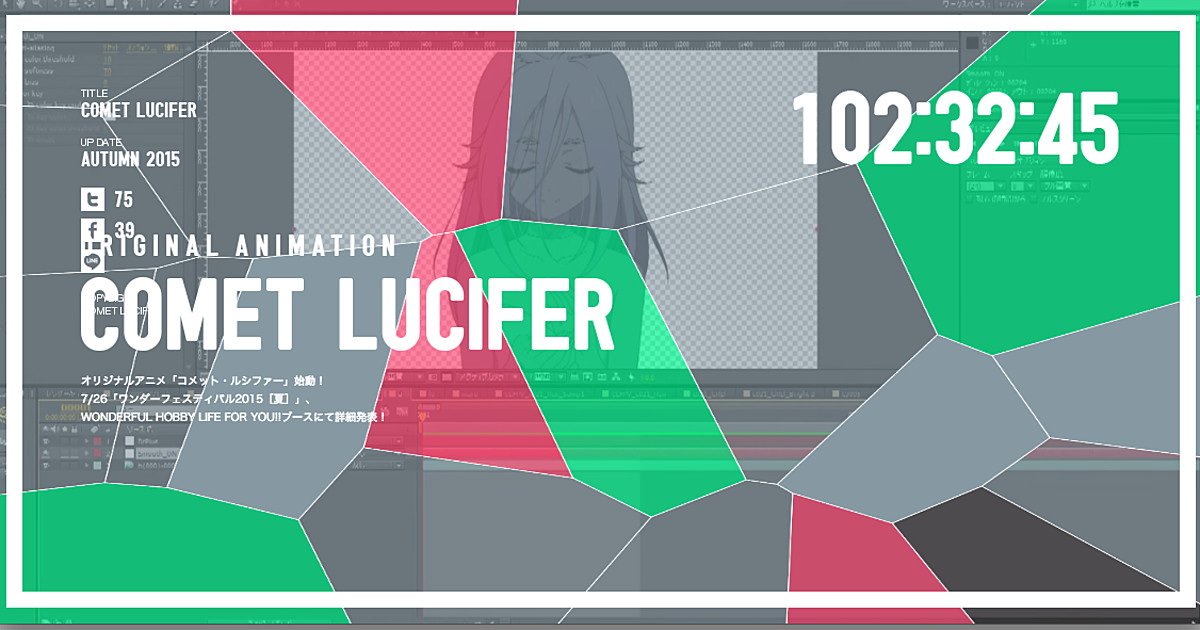 A teaser site for Bandai Visual's new original anime Comet Lucifer opened on Wednesday. The site depicts the animation process of a girl character, as well as a countdown timer towards Sunday and a "Autumn 2015" date.