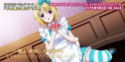 MAGES.' 5pb. Games began streaming a promotional movie for its Infinite Stratos 2: Love and Purge game on Thursday. The video features Charlotte Dunois, voiced by Kana Hanazawa.